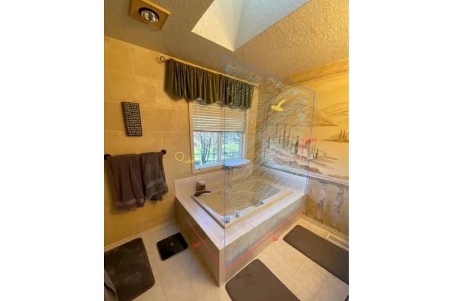 For this master bathroom, the biggest transformation was removing the jetted bathtub to create a larger, spa-like shower. We dropped the subfloor about 3 inches to install a curbless shower, finished with large-format tile and frameless shower glass for a clean, modern feel.