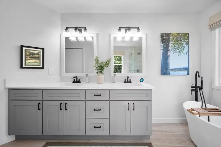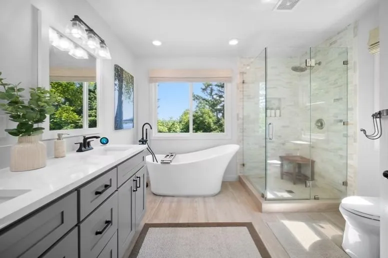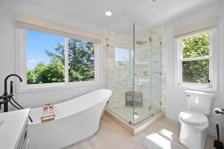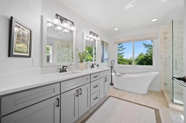 This project highlights two bathroom remodels completed in Lake Oswego, Oregon. One of the biggest changes was removing a drop-in tub with a tiled surround and replacing it with a freestanding bathtub — one of the most common requests we receive. The transformation instantly made the bathrooms feel larger, more open, and much more modern.