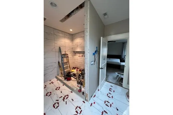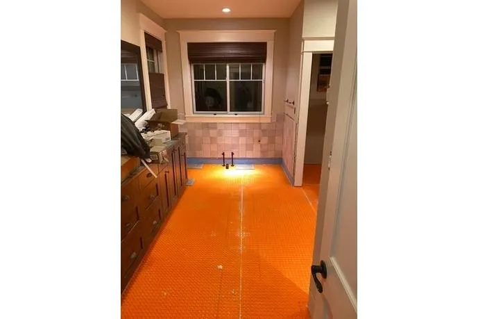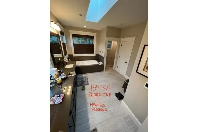 The homeowner initially contacted us after a toilet leak had led to floor damage and issues with the heated flooring. What began as a repair quickly became the perfect opportunity for a full renovation.